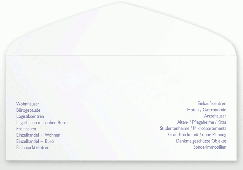 Bei Interesse eines Invest-Arrangements schicken Sie uns bitte das eMail-Formular mit Ihren Kontaktdaten und eventuell einem Anforderungsprofil, Angaben zum bevorzugten Stadtort sowie das zur Verfügung stehende Invest Volumen.